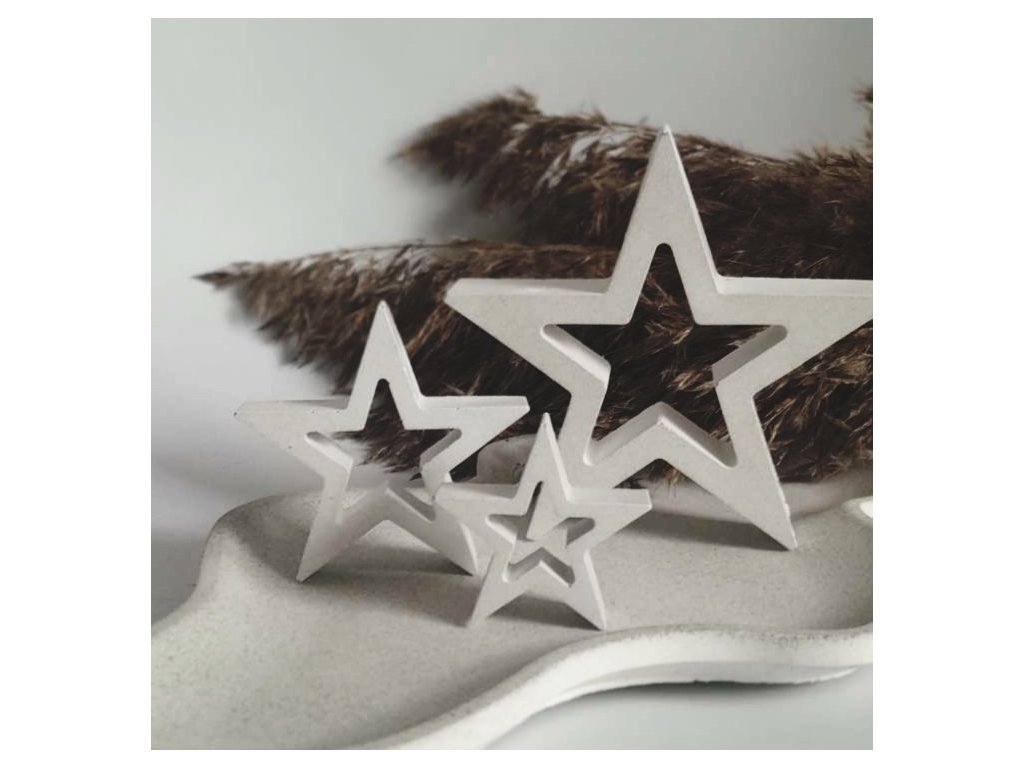 Sada 3 různě velikých hvězdiček určitě využije jako minimalistickou výzdobu nebo můžeš dát do věnce na stole, jako ozdobu na dárky aj. Vyrobeno z vlastní betonové hmoty.