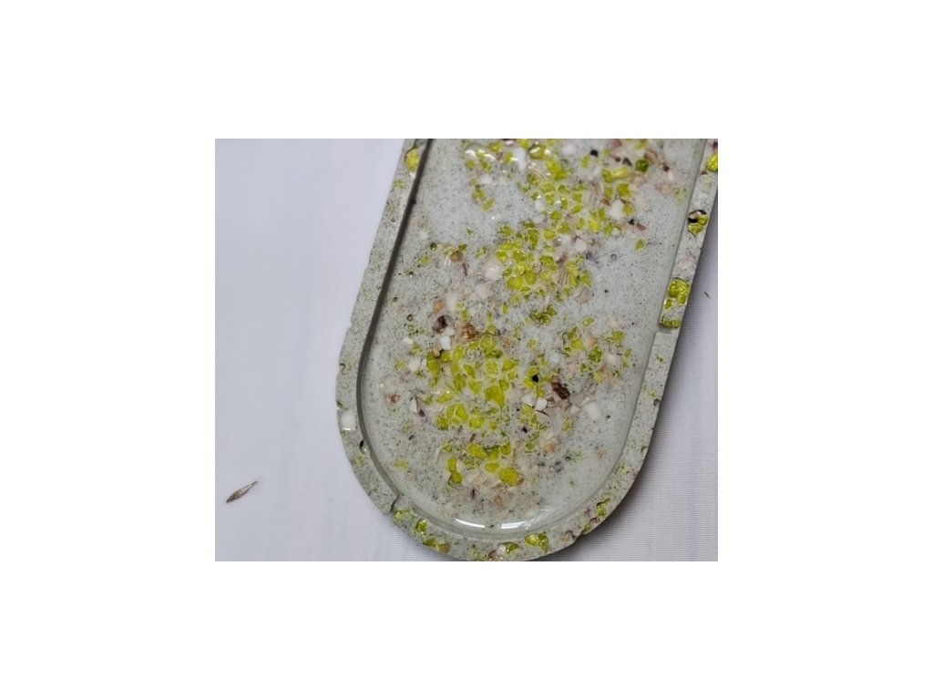 Kombinace betonu, barevných kamínků a pryskyřice tě nadchne.